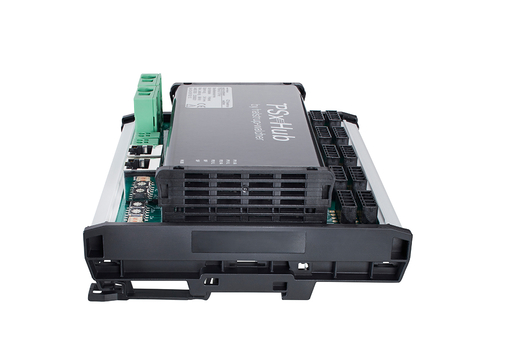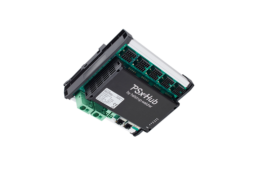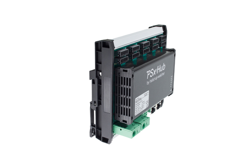 Mit seiner kompakten Gehäusebauform von 14,2 x 16,4 x 6,4 cm (Schaltschrank-Variante) ist er eine effiziente und platzsparende Lösung für eine zentrale Daten- und Leistungsübertragung. Der PSxHub S10 ist für die Industrial-Ethernet-Systeme PROFINET und EtherCAT erhältlich (weitere auf Anfrage).